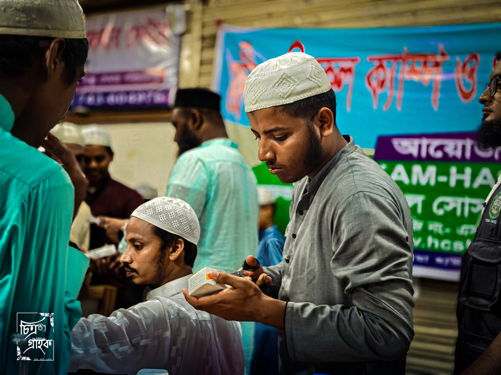 Alhamdulillah, apart from the Mahfil and Mahfil in Charmunai, we have organized medical camps several times so far. On 24/06/25, we went to Charmunai with a convoy of about 20 people including doctors, nurses, pharmacists and volunteers with medicines worth several lakhs of taka. A medical camp was organized there, in which hundreds of teachers and students of Charmunai Madrasa received free medical services, along with medicines prescribed by the doctor. And finally, medicines worth several lakhs of taka were provided to the internal hospital of Charmunai so that they can later provide medical services with them. In this program, Pir Saheb Charmunai Mr. Rezaul Karim Dabah and other senior teachers have given us the utmost cooperation, Alhamdulillah.
